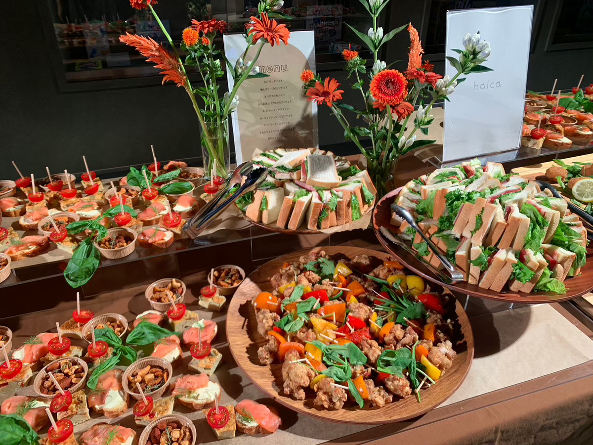 外部の方もいて名刺交換なども多い交流会。小分けになったお料理を提供するケータリングがおすすめ。 お話しながらさっととったり、だれかがまとめてとったりする時も小分け料理になっている方がスムーズかつスマートにお料理を食べることができます。