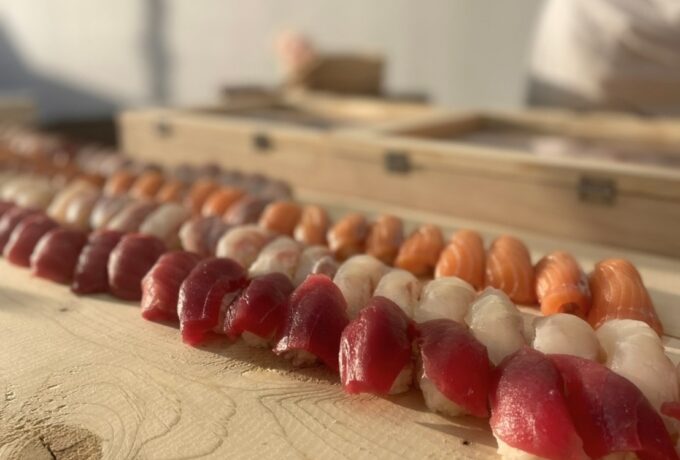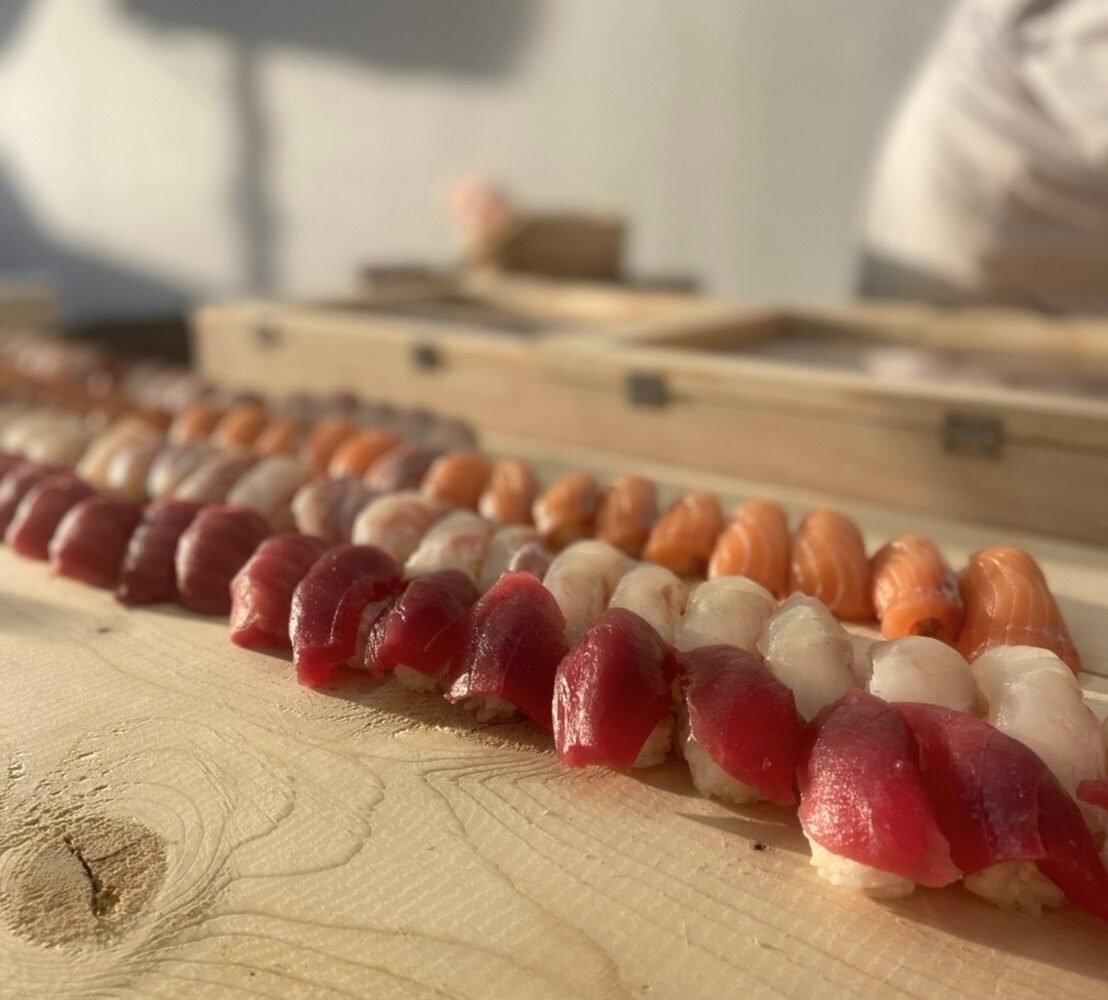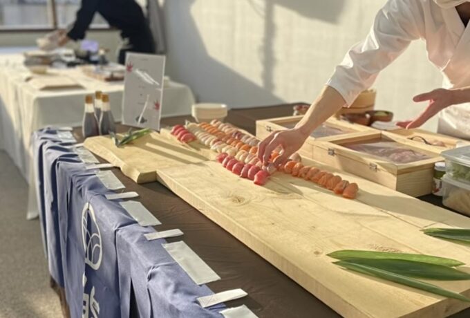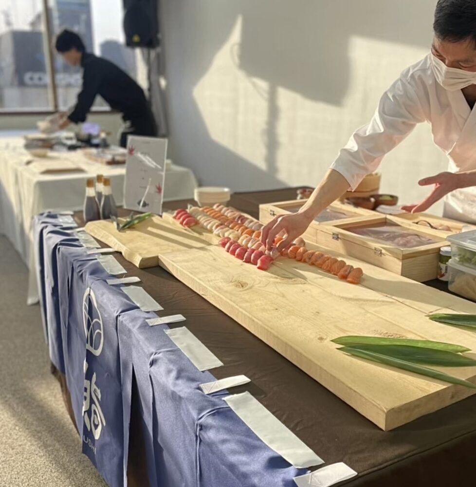厳選された新鮮なネタをお客様の前で握ってご提供しました。 独自調合の赤酢シャリが味わい深く、素材の旨味を引き立てます。 特別な場を彩る上質なケータリングとして、多くの支持を集めています。 お祝いの場や企業のイベントに、特別感を添える一品をお届けします。