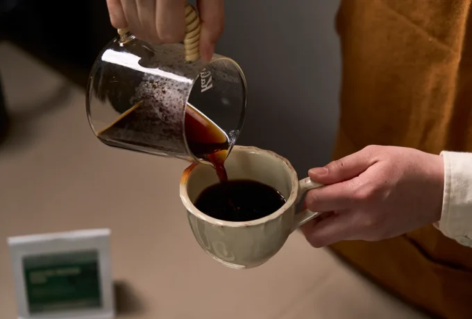 目の前でバリスタが丁寧に淹れる一杯。香りが立ち上る瞬間から、出来立ての味わいまで、すべてをその場で楽しむことができます。淹れたての香り高いコーヒーを、その場で味わう贅沢なひとときをご体験ください。